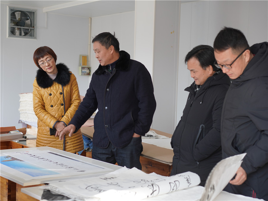 1月11日由市文旅局副局長王迎春帶隊的,黃山市非物質(zhì)文化遺產(chǎn)傳習(xí)基地驗收組到我司黃山市凝霜文化發(fā)展有限公司進(jìn)行調(diào)研工作。