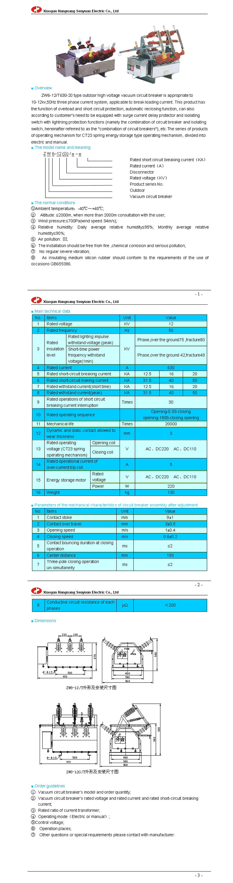 ZW6-12(G)outdoor high voltage vacuum circuit breaker