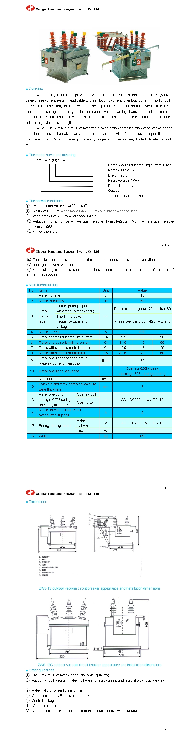 ZW8-12(G) outdoor high voltage vacuum circuit breaker