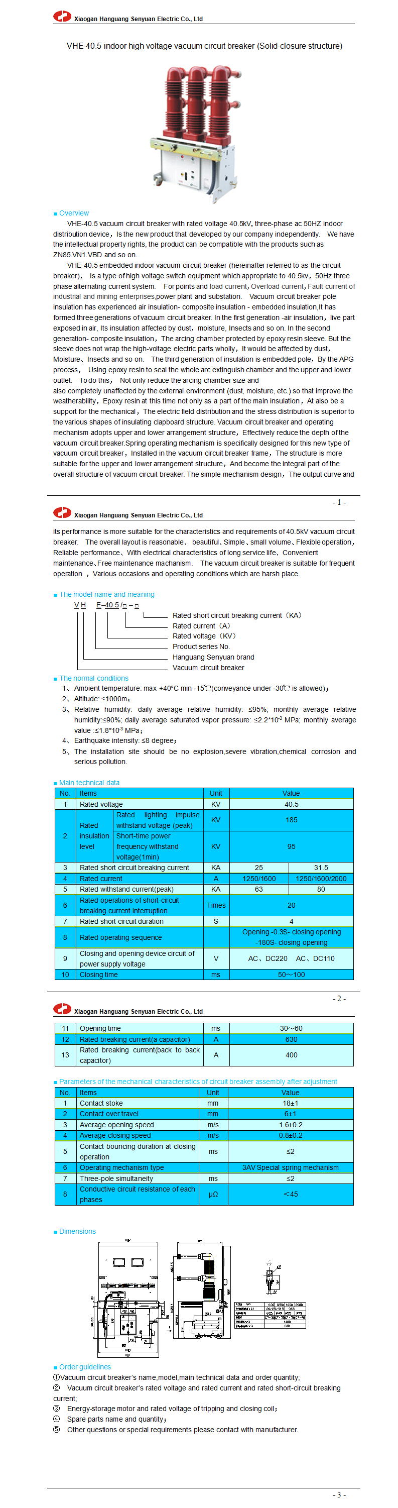 VHE-40.5 indoor high voltage vacuum circuit breaker (Solid-closure structure)